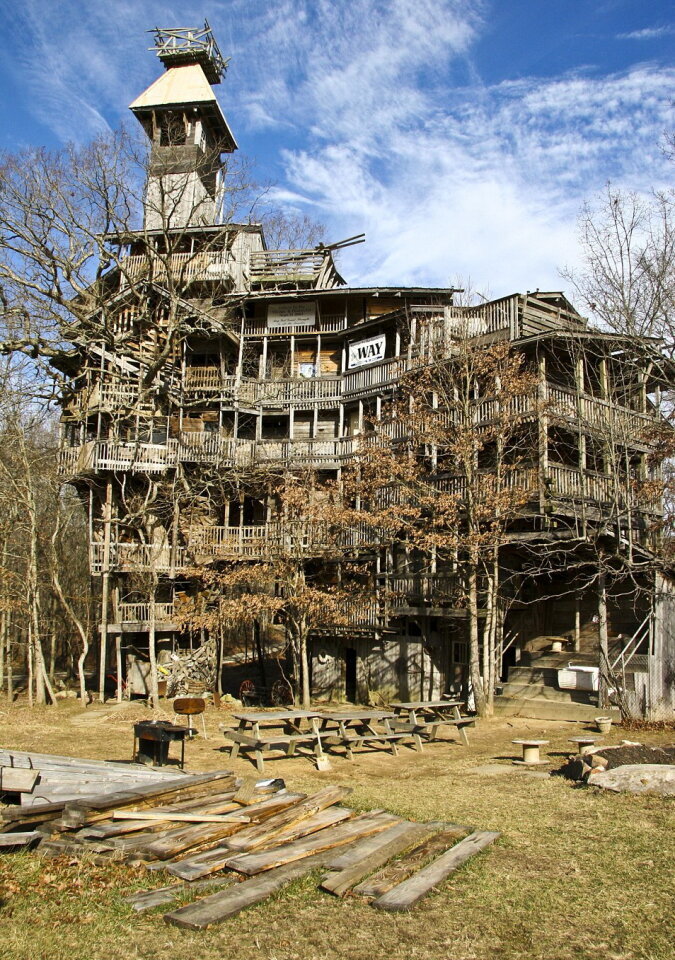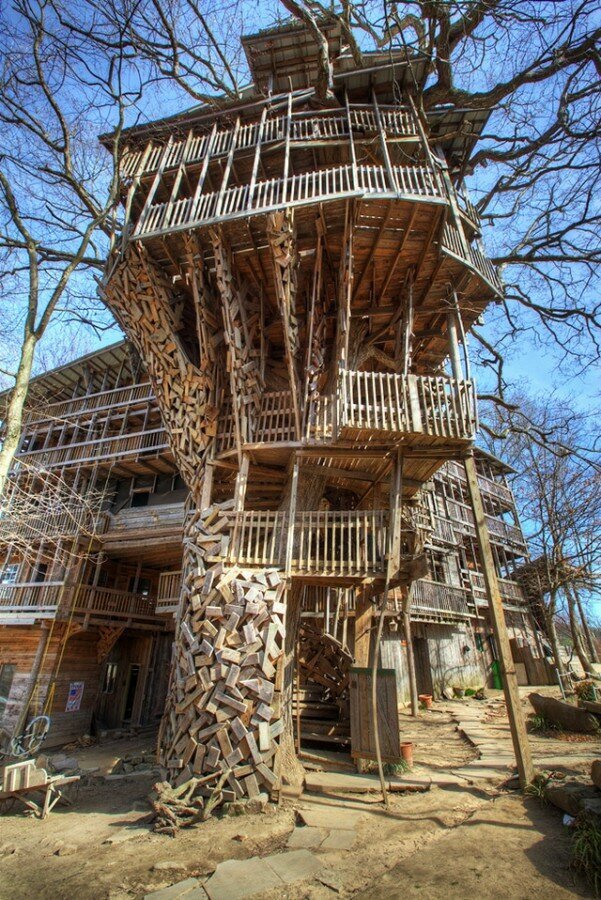 Er begann 1993 mit dem Bau. Ursprünglich wollte der Mann einen kleinen Bungalow bauen, aber schließlich wurde daraus fast ein Wolkenkratzer! Das Interessanteste ist, dass Horace das Haus selbst gebaut hat, ohne die Hilfe anderer Bauherren und Architekten. Er zeichnete den Entwurf selbst und machte sich an die Arbeit. Als Materialien verwendete er alte Bretter aus Schuppen, Bauschutt und Teile aus verlassenen Häusern. Mit der Zeit begannen gute Nachbarn, Materialien zur Verfügung zu stellen.