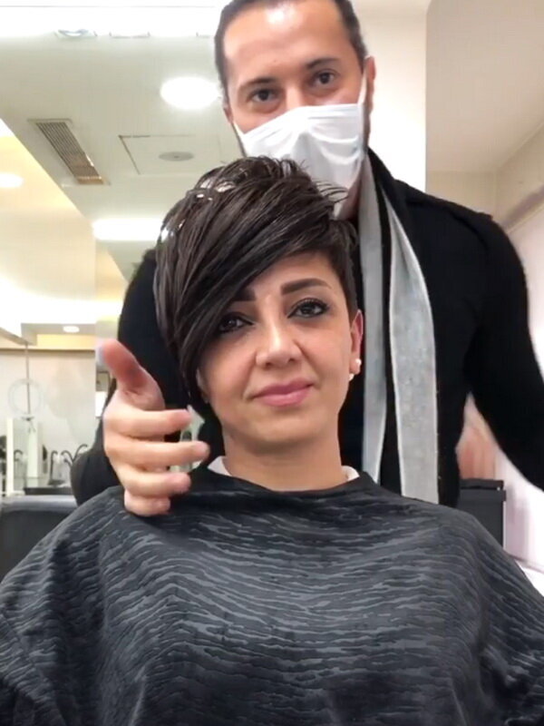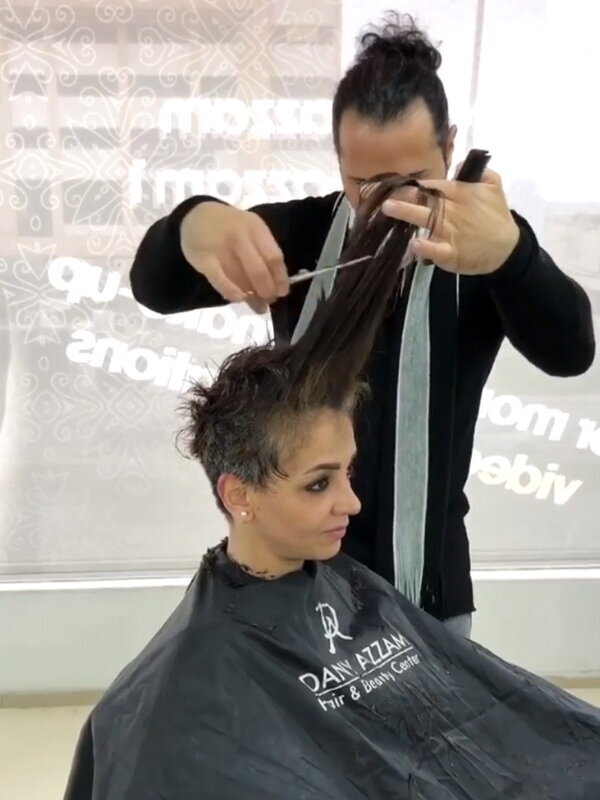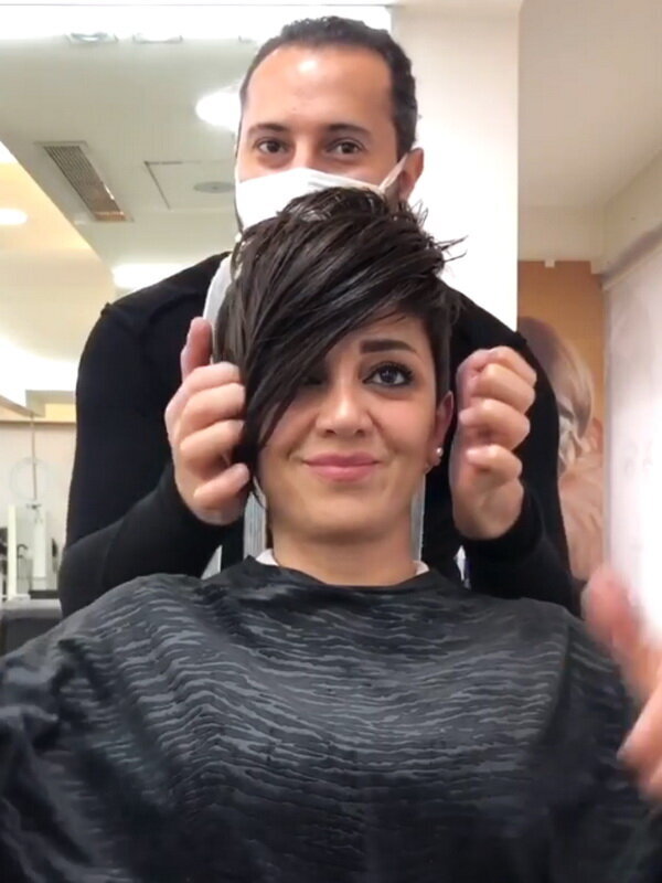 Angelina blätterte in einigen Katalogen und überraschte den Meister mit ihrer Wahl: der Pixie! Nach vielen Jahren mit langem Haar entscheiden sich nicht viele Menschen für so kurzes Haar. Der Friseur fragte die Frau mehrmals, aber sie war entschlossen