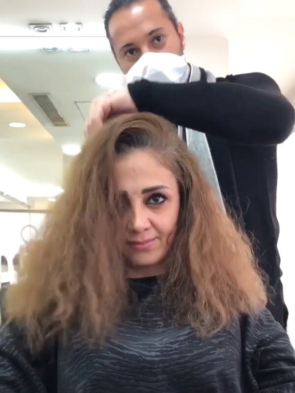 Der Hinterkopf ist fertig! Es sieht so aus, als ob weniger als ein paar Zentimeter übrig sind.... Solche Veränderungen erfordern wirklich Mut.