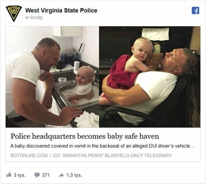 Der gesamte Bundesstaat Virginia ist sehr stolz auf das Verhalten der dortigen Polizeibeamten. Die Männer fanden ein einjähriges Kleinkind in einem verschlossenen Auto. Er war vernachlässigt, schmutzig und roch nach seinem Erbrochenen. Die uniformierten Beamten retteten das Kind und gewährleisteten ihm trotz der harten Bedingungen die bestmögliche Versorgung. Sie brachten ihn auf die Polizeiwache und badeten ihn im Waschbecken. Die Fotos des folgenden Vorfalls lassen die Menschen buchstäblich erröten.