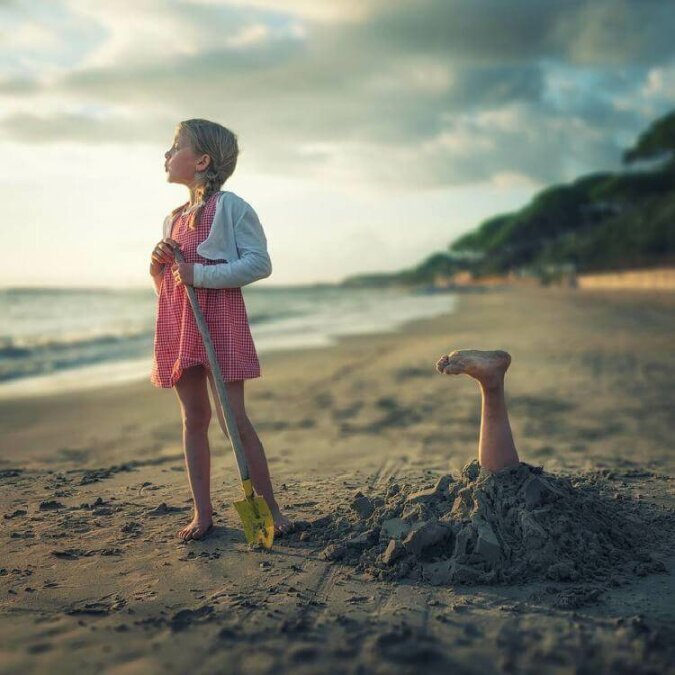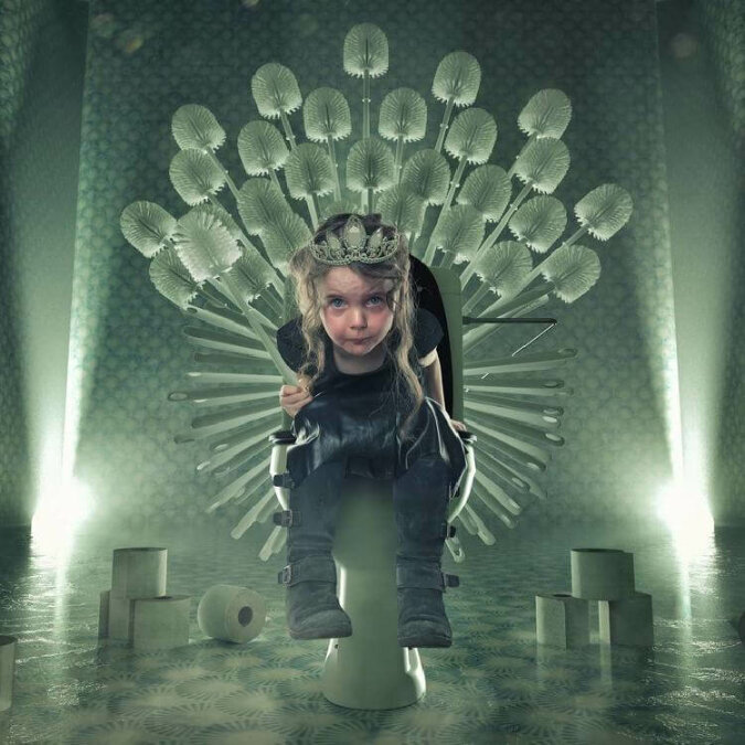 Es ist zu bemerken, dass der Fotograf nicht nur bei den Fotos seiner Töchter sehr kreativ ist. Ausnahmslos alle seine Fotografien sind höchst originell und unterhalten nicht weniger als eine interessante Komödie.