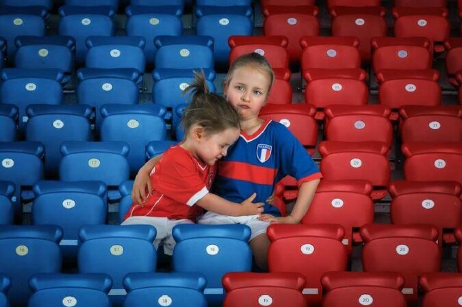 Der Fotograf übertreibt, um die Mädchen aus völlig unterschiedlichen Perspektiven zu zeigen. Alle Motive der Familienporträts sind äußerst positiv und einzigartig. Ein Lächeln von Ohr zu Ohr!