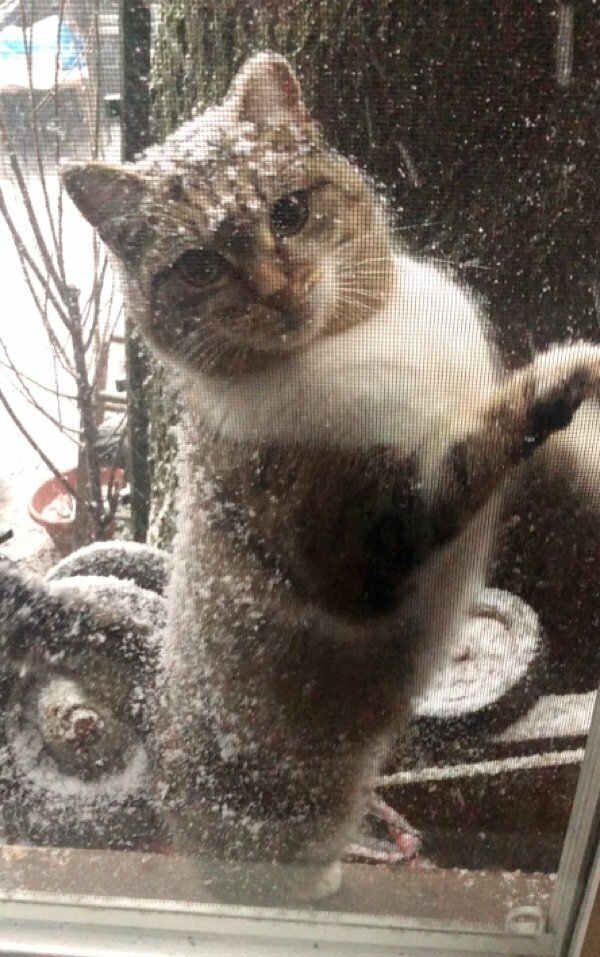Schließlich kehrte die Katze im Herbst zurück. Mehrere Monate lang fütterten sie sie aus der Ferne. Einmal, während eines starken Schneefalls, hörte Nathaniel ein Geräusch auf der Straße und sah dieselbe Katze.
