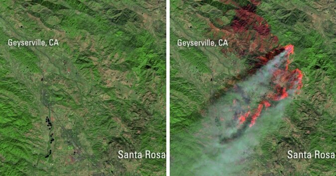 Wie die Brände in Kalifornien aus der Sicht eines Satelliten aussehen