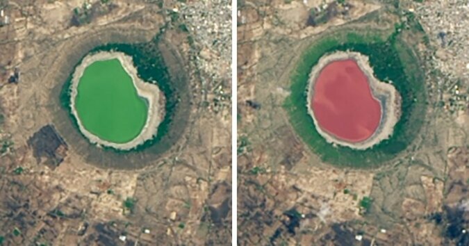 Der Lonar-See in Indien hat seine Farbe verändert