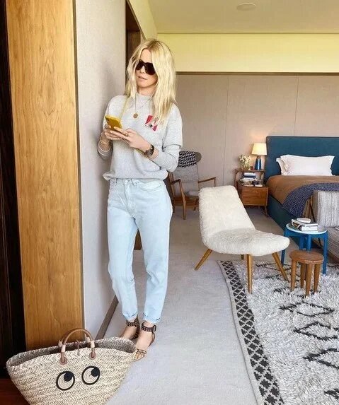 Schiffer ist eine große Liebhaberin von Jeans und hat verschiedene Modelle in ihrem Kleiderschrank. Ihre schlanken Beine erlauben es ihr, enge Modelle zu tragen.