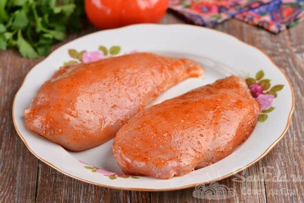 Verwenden Sie fertige, im Laden gekaufte Filets oder schneiden Sie sie aus der ganzen Brust. Die Filets abspülen und abtrocknen, alle weißen Häute und Gräten entfernen.