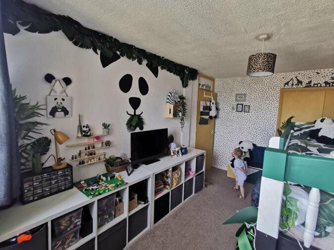 Beckys jüngster Sohn liebt Pandas, und so sind sie auch in der Zimmerdekoration vertreten.