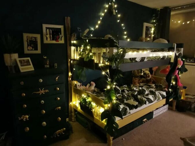 Becky Watts, 36, hat zwei Kinder, die sich schon lange ein ungewöhnliches Zimmer für ihr Zimmer gewünscht haben. Die Frau hatte jedoch nicht das Geld für eine groß angelegte Renovierung, und so beschloss sie, inspiriert durch Bilder aus dem Internet, den geringen Betrag, den sie hatte, zu verwenden.