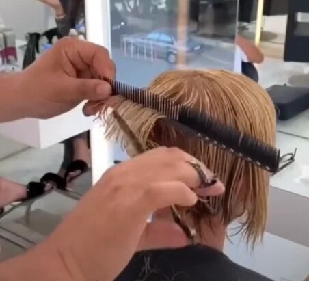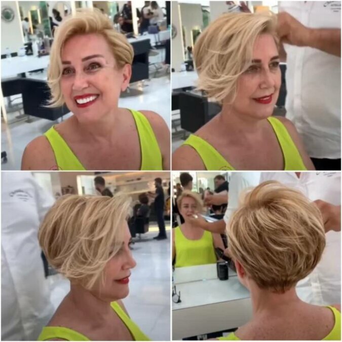 Die Heldin dieser Geschichte hat sehr feines Haar. Sie wandte sich an den Friseur, um sich eine Frisur auszusuchen. Die Dame hatte lange Zeit einen Bob getragen, aber diese Frisur hatte kein Volumen und ließ die Kundin altern. Der Friseur schlug der Frau vor, ihr Image radikal zu ändern und eine modische Kurzhaarfrisur zu tragen