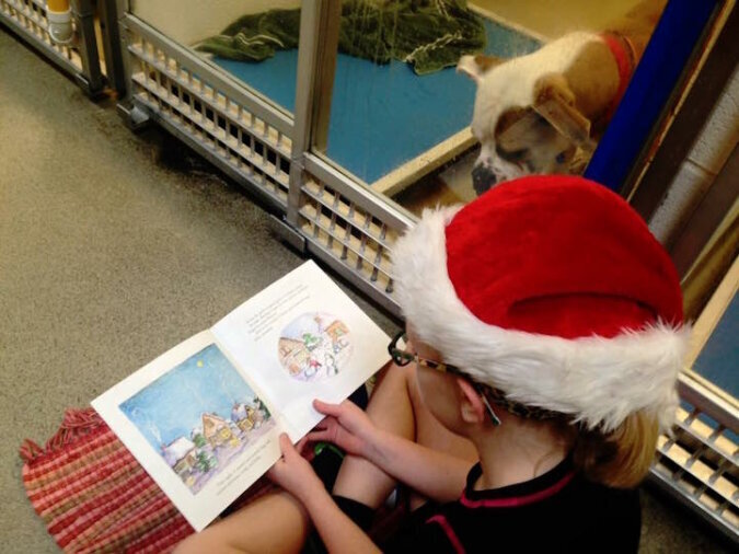 Das "Friends of the Shelter"-Leseprogramm ist eine wunderbare Initiative, die es Kindern ermöglicht, nervösen Hunden Bücher vorzulesen, um ihnen zu helfen, ruhiger und selbstbewusster zu werden.