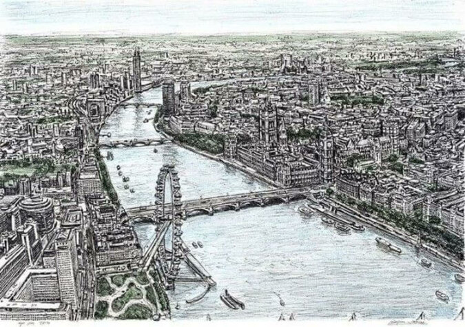 Als Kind zeichnete Wiltshire Skylines von Städten in aller Welt: Tokio, Madrid, Dubai, Jerusalem, Sydney, Shanghai, Istanbul, Mexiko-Stadt und Rom. Er arbeitet ausschließlich mit Bleistift und Kugelschreiber.
