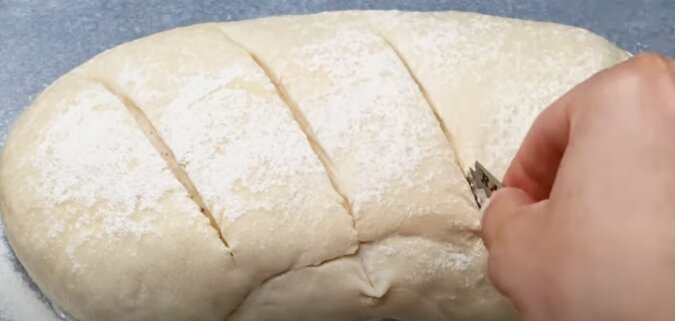 Den Teig mit Mehl bestäuben und ein Sieb verwenden.