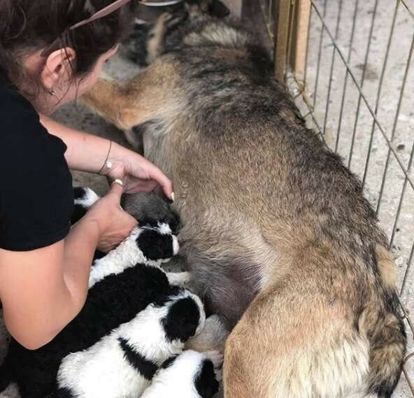 Aber das Mädchen hatte sehr schnell einen besseren Plan für die Welpen :) Hilarys alleinerziehende Mutter erinnerte sich daran, dass vor ein paar Tagen eine Hündin ins Tierheim gebracht wurde, die vor kurzem entbunden hatte. Sie produzierte zwar immer noch Milch, aber es waren keine kleinen Kinder da! Das arme Ding war auf der Straße gefunden worden, mit Essen im Mund, wimmernd und in alle Ecken schauend. Es war offensichtlich, dass sie nach ihren Welpen (sie waren vielleicht ein paar Wochen alt) suchte und sie unbedingt füttern wollte.