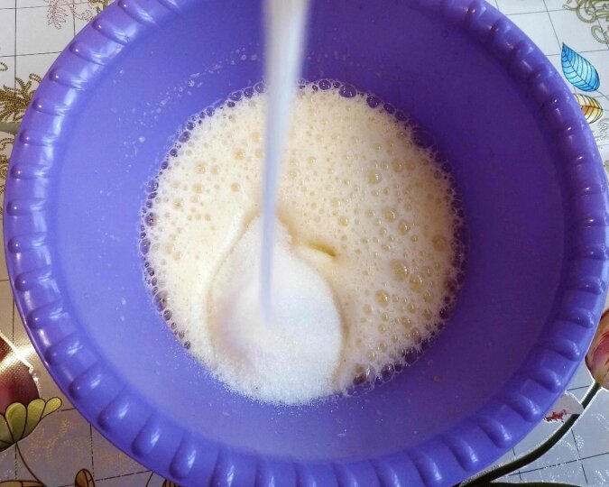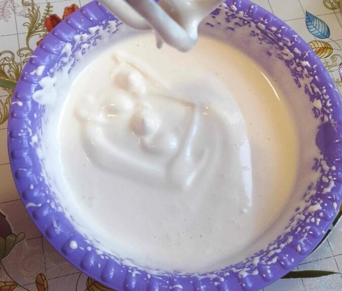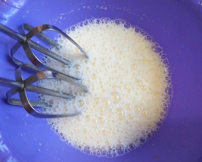 So sollte dieser dicke, flauschige Schaum aussehen. Wenn Tropfen auf seine Oberfläche fallen, behalten sie ihre Form für einige Sekunden.