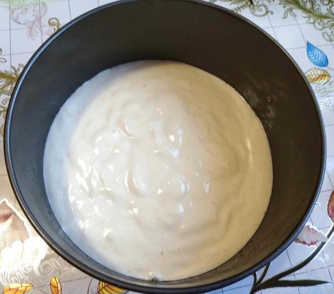 Den Biskuit in einer hohen Form mit Rand backen (Durchmesser meiner Form 18 cm). Den Boden und die Seiten mit Backpapier auslegen (wenn das Pergament keine Silikonbeschichtung hat, dann mit Öl einfetten). Den Backofen auf 170° vorheizen. Die Backzeit beträgt etwa 50-55 Minuten.