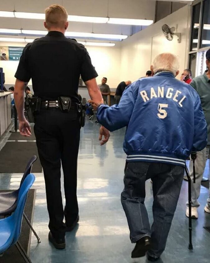 Kurz darauf veröffentlichte die Polizei von Montebello ein Foto von Officer Hosetta, der den alten Mann zur Bank begleitet. Die Dankesworte kamen nicht nur von den Bankangestellten, sondern aus dem ganzen Land! Dieses Foto wurde bereits fast 40.000 Mal geteilt!