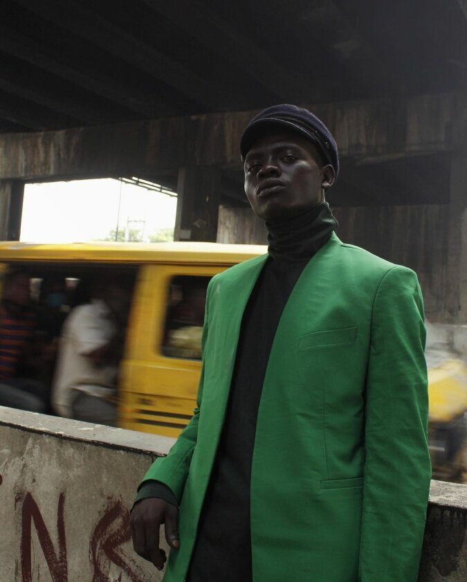 Der Stylist weckte den Obdachlosen auf und erklärte ihm, dass er ihn für seine Kollektion fotografieren wolle. Der überraschte Mann stimmte zu, und Afolabi wartete nicht auf die Ankunft des professionellen Fotografen.