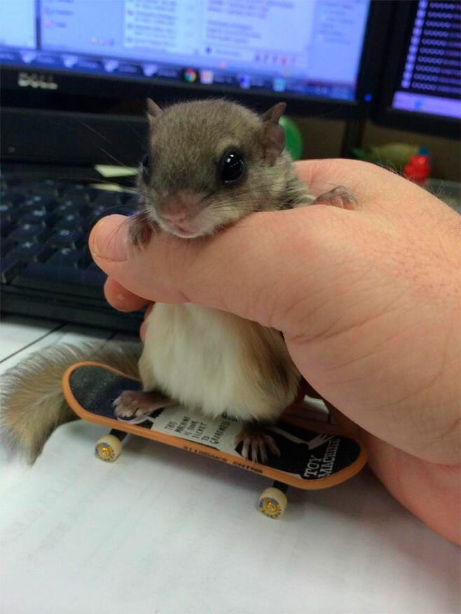 Das Eichhörnchen erhielt den Namen Cookie. Zunächst lebte das Tier in einer Tasche auf der Brust eines Mannes, und nach drei Monaten begann es, die Welt zu erkunden.